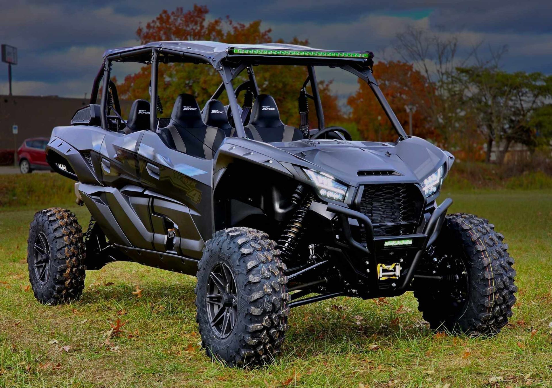 Featuring a 1000cc high-performance engine, beefy suspension, trail-tuned handling, and the sleek Blackout aesthetic, the KRX4 is engineered for thrill-seekers who want a premium side-by-side experience with room for the whole crew.